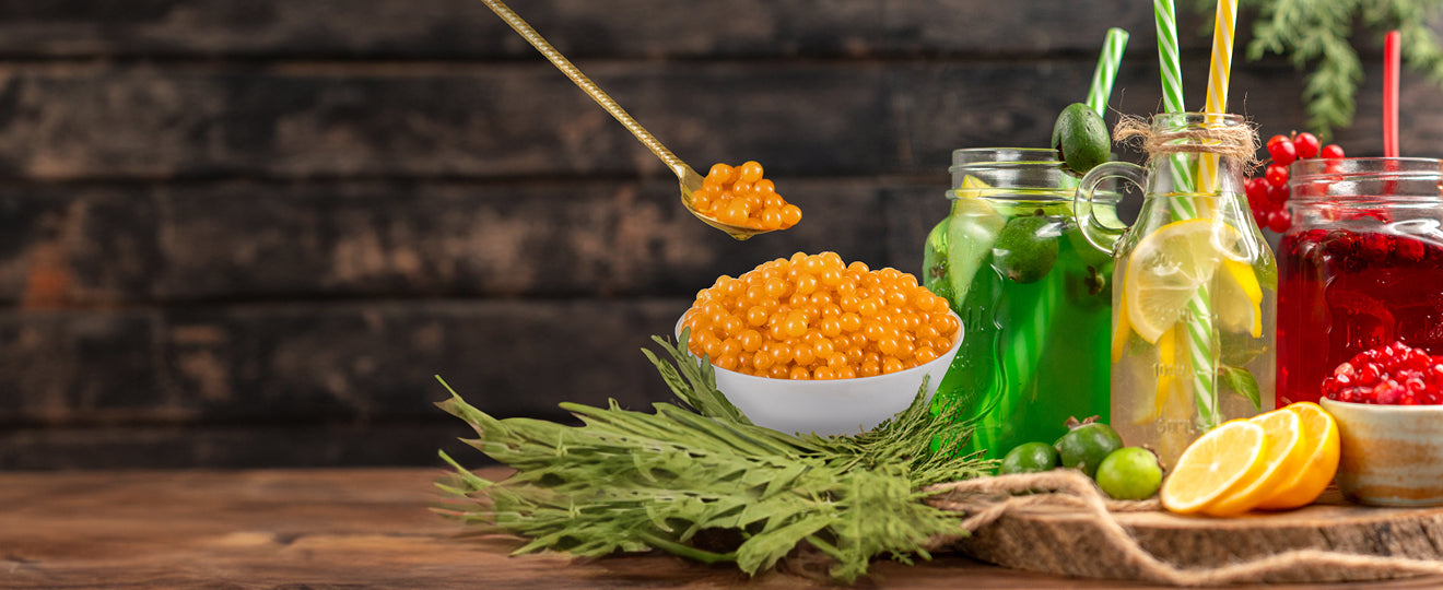 Organic mountain tea with lemon popping pearls and a splash of lemon syrup