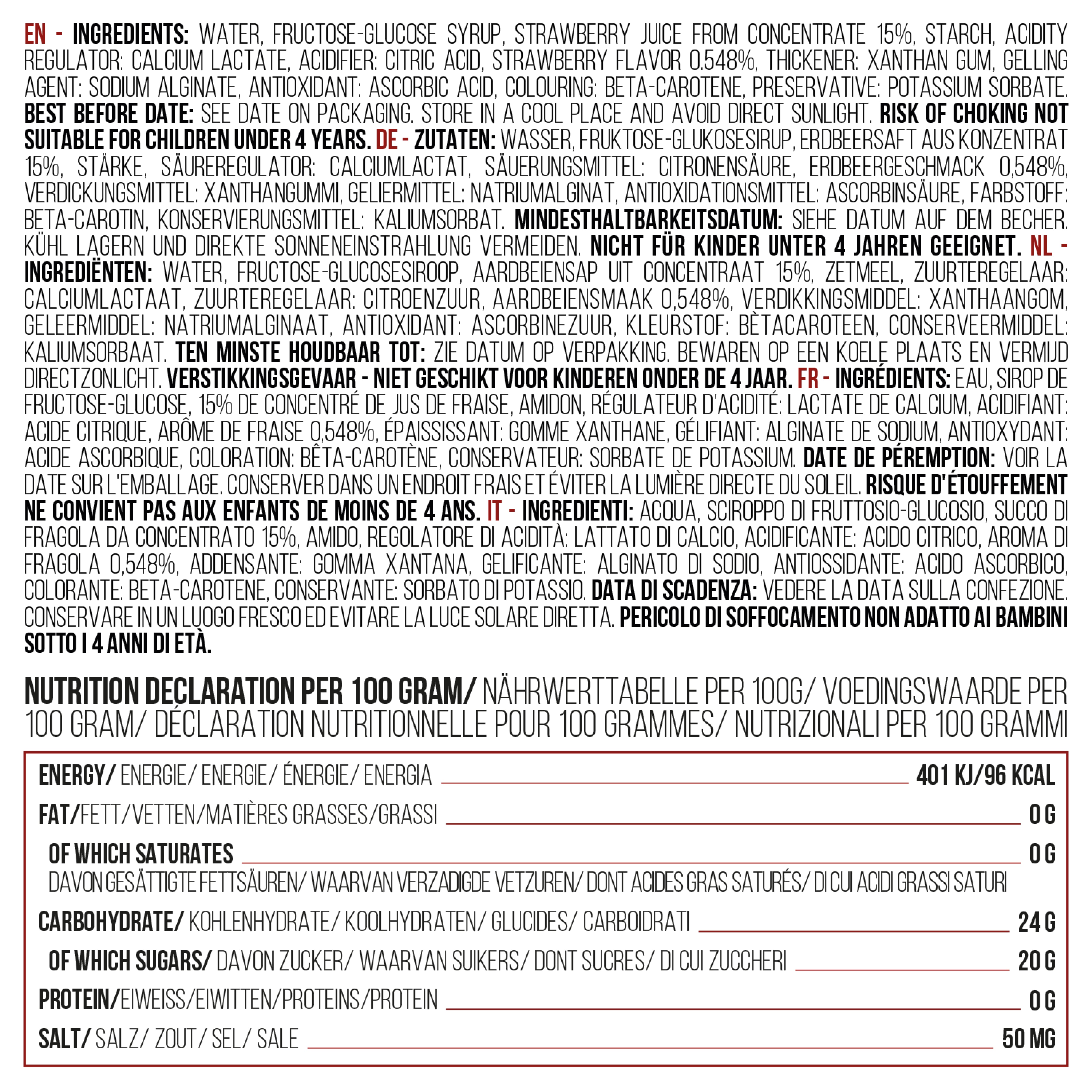 - Single 450 g cup: +/- 10 servings