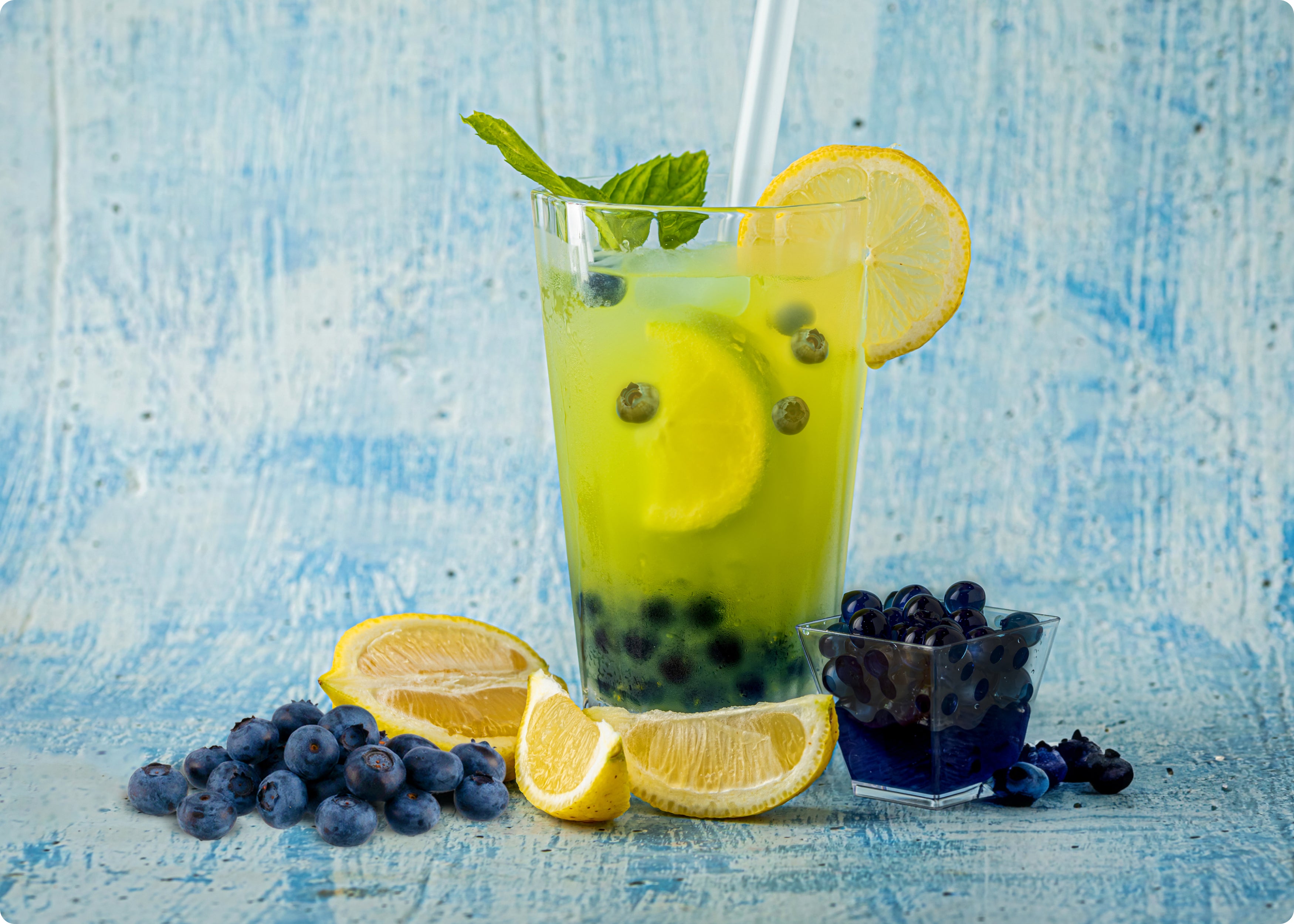 Añada a sus bebidas y otras creaciones las perlas de arándanos, comúnmente conocidas como boba. Estas delicias listas para comer están diseñadas para tés de burbujas, pero también son deliciosas en postres, cócteles y mucho más.