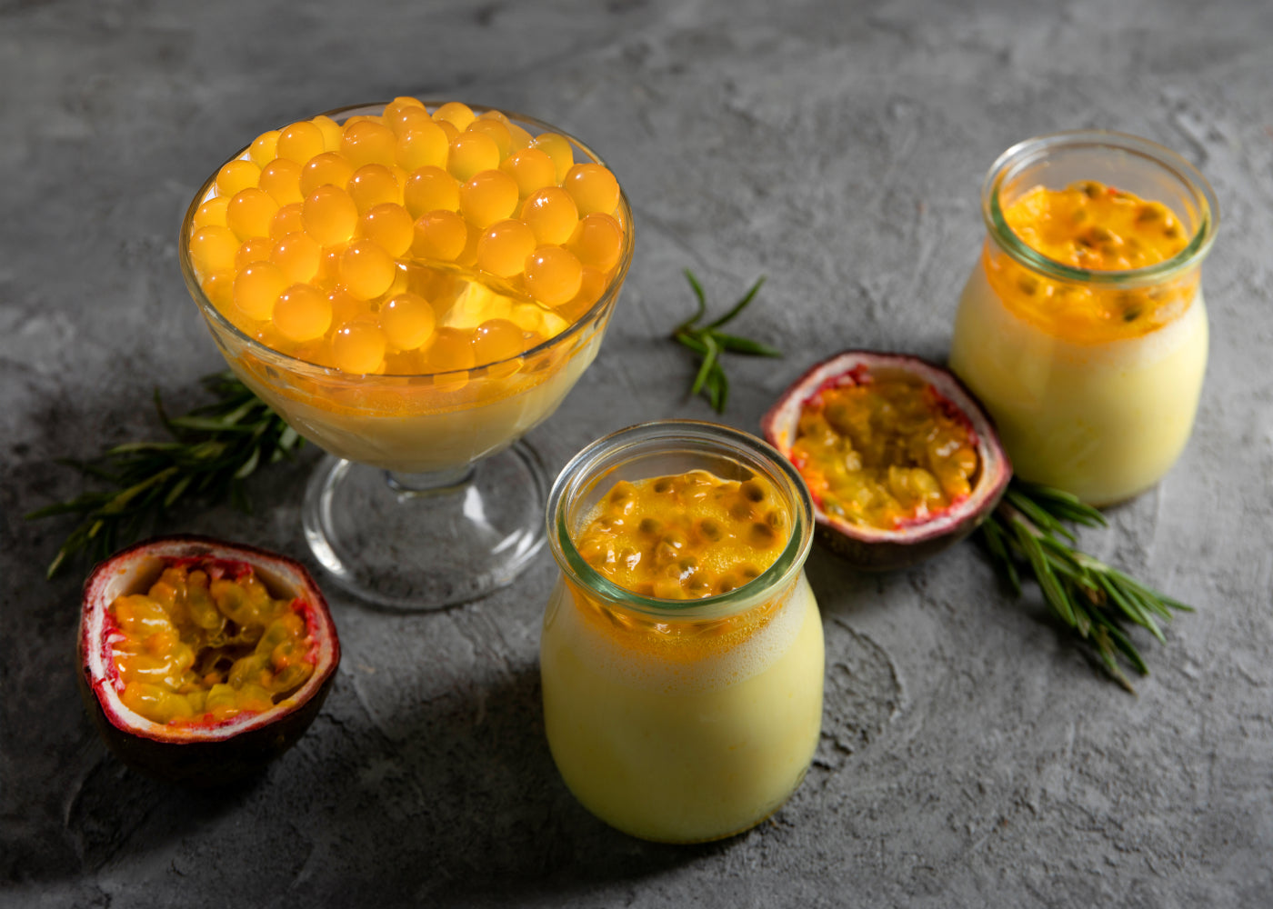 Añada a sus bebidas y otras creaciones las perlas de Fruta de la Pasión, comúnmente conocidas como boba. Estas delicias listas para comer están diseñadas para tés de burbujas, pero también son deliciosas en postres, cócteles y mucho más.